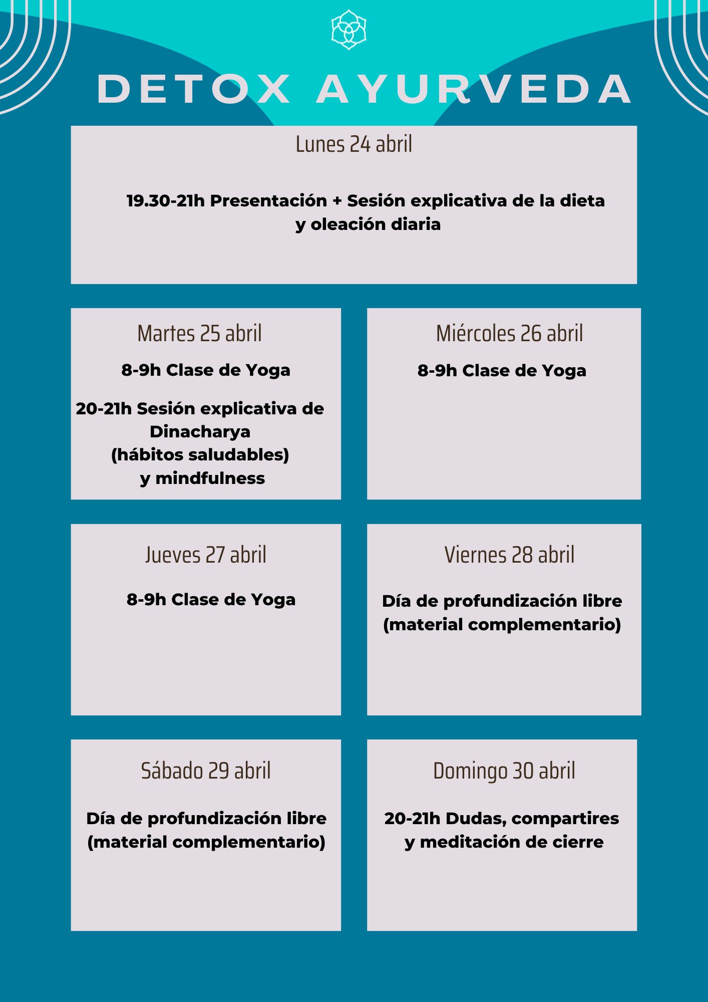 En este détox vamos a eliminar las toxinas de los órganos donde predominan kapha y pitta dosha, favoreciendo una limpieza no sólo física, sino también mental y espiritual.