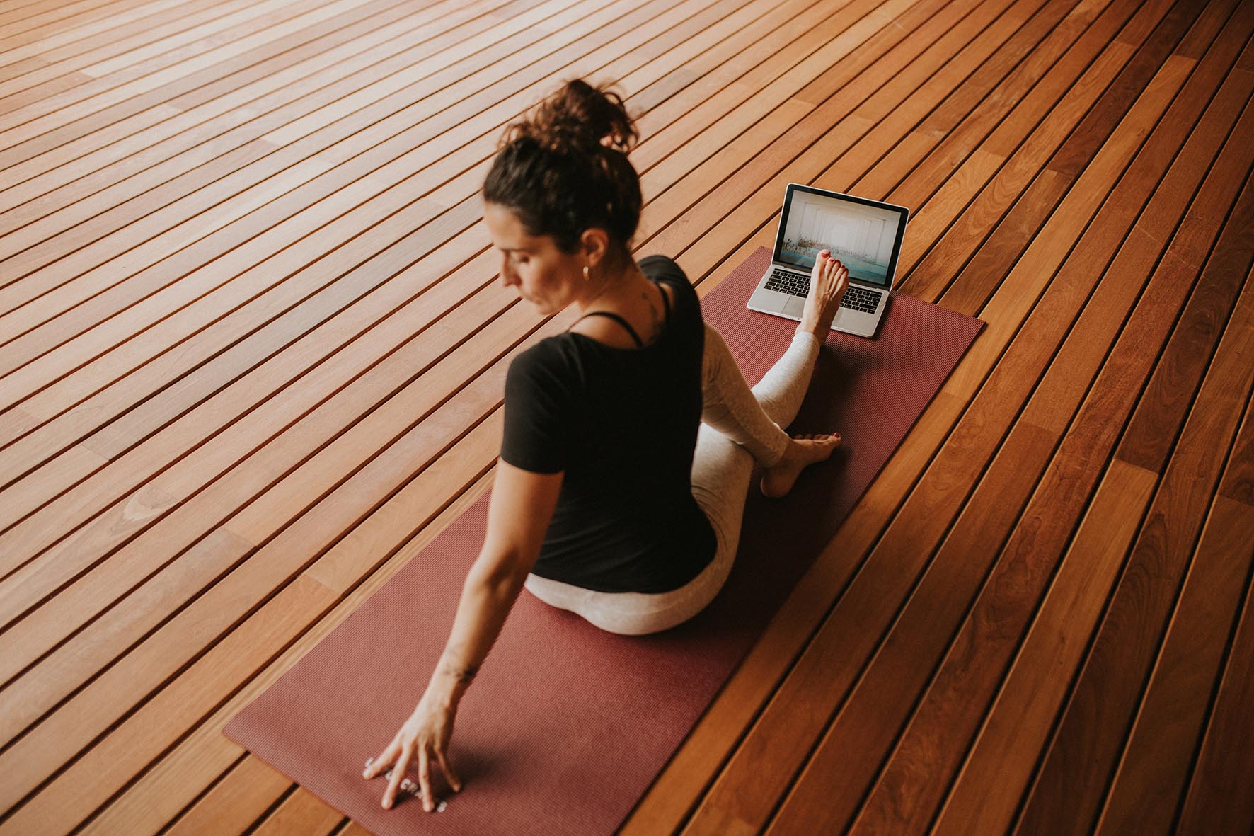 Acceso durante un año a más de 50 vídeo prácticas y clases guiadas de yoga, movimiento, respiración, meditación y desarrollo personal.